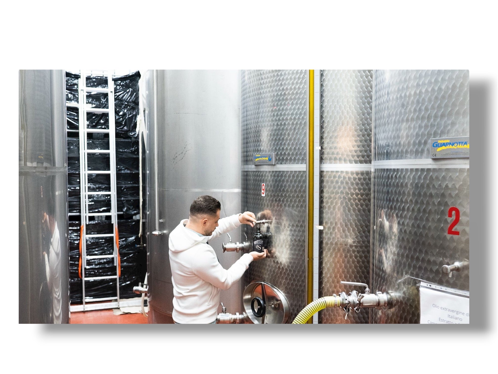 L'olio appena estratto viene lasciato riposare in silos d'acciaio inox, al riparo da luce e ossigeno. Questo periodo di decantazione naturale consente di ottenere un prodotto limpido e stabile, senza alterazioni. Solo dopo un attento controllo, procediamo all'imbottigliamento, effettuato in ambiente protetto per conservare intatte le qualità organolettiche e aromatiche dell'olio.